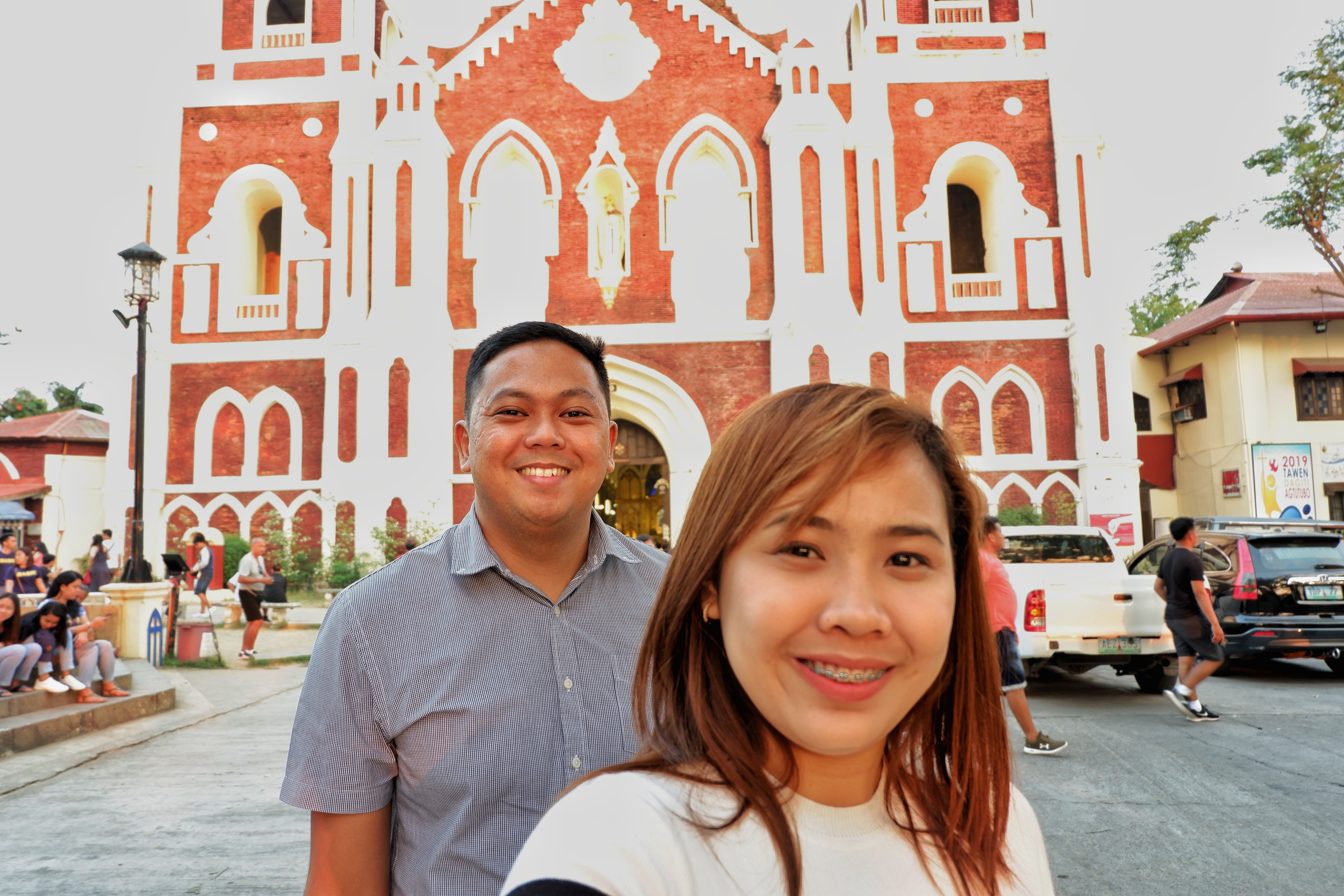 Infront of Vigan Cathedral with a dancing fountain